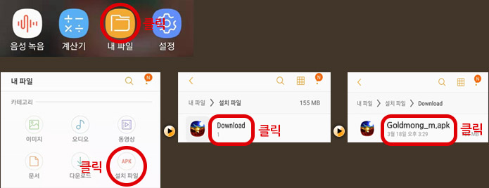 Apk 파일 클릭 시 출처를 알 수 없는 앱에 대한 설치 경고가 뜨고 허용 후